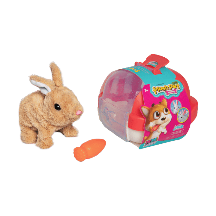 Kanin. Med rörelse, ljud, bur och tillbehör. 12 cm. Finns flera olika. Från 3 år.