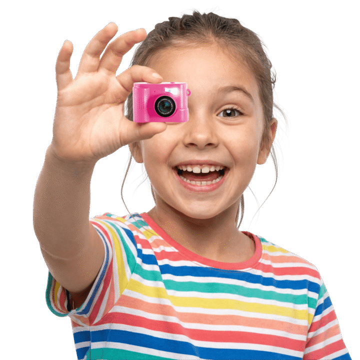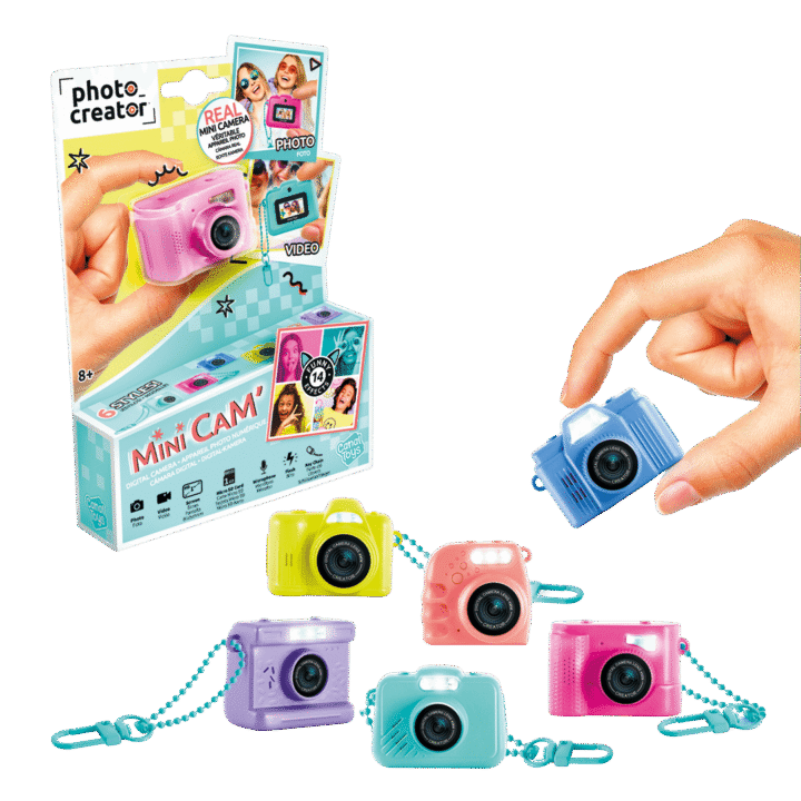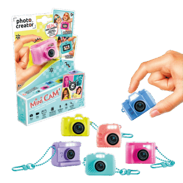 Mini-digitalkamera. Med miniskärm, färgfilter och 1 GB microSD-minneskort. Finns flera olika. Från 8 år.