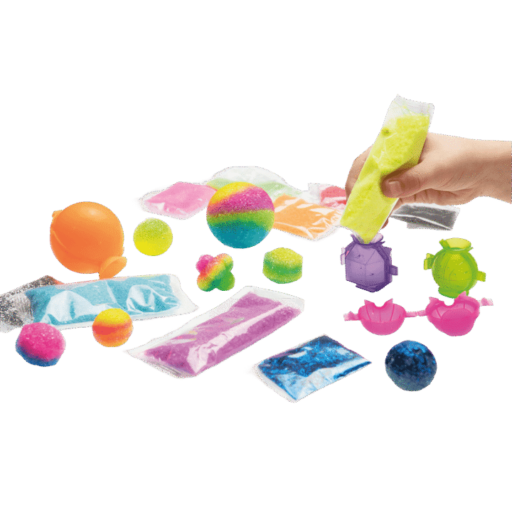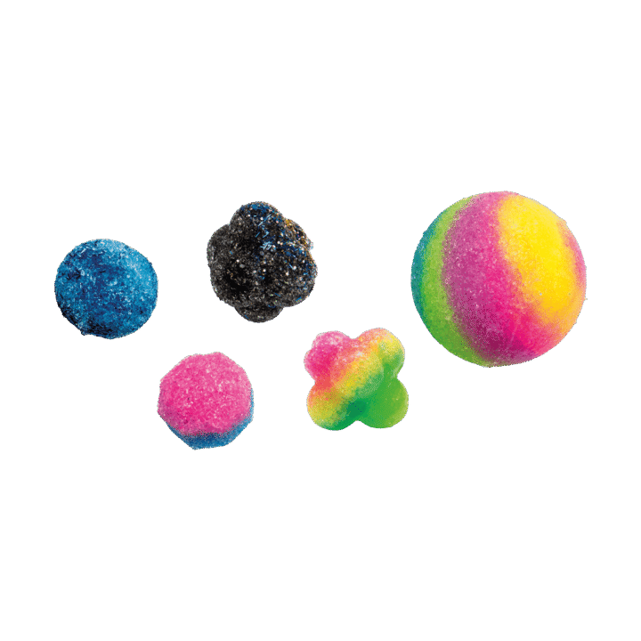 Kärnan. Kul att skapa. Studsbollar. Med studspulver i 8 färger, 3 sorters glitter och 4 olika gjutformar. Från 6 år.