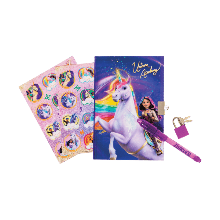 Unicorn Academy. Dagbok. Med lås, magisk penna och klistermärken. Från 3 år.
