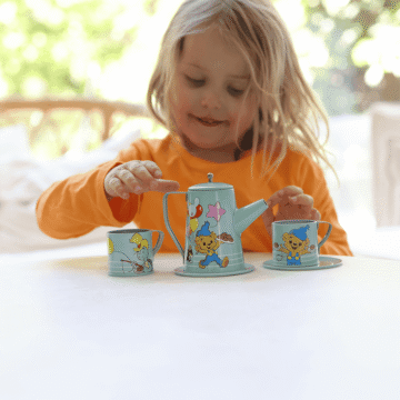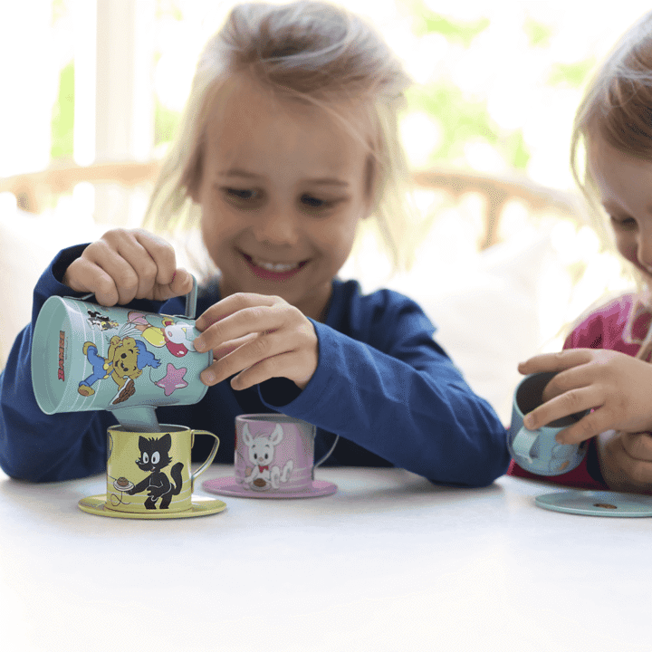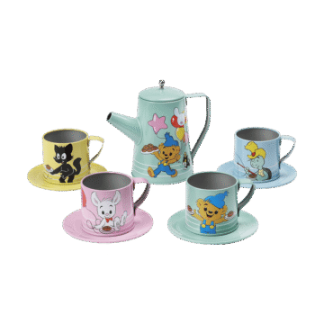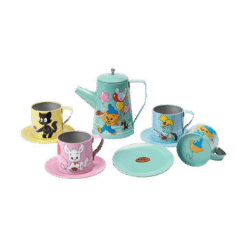 Bamse. Teservis. I metall. Med koppar, fat och tekanna med lock. 10 delar. Från 3 år.