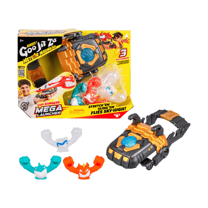 Heroes of Goo Jit Zu. Meteor Madness. Goo-Slingers Mega Launcher. Slangbella. Med 3 stretchfigurer. Finns flera olika. Från 4 år.