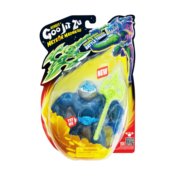 Heroes of Goo Jit Zu. Meteor Madness. Kan sträckas upp till 3 gånger sin storlek. Finns flera olika. Från 4 år.