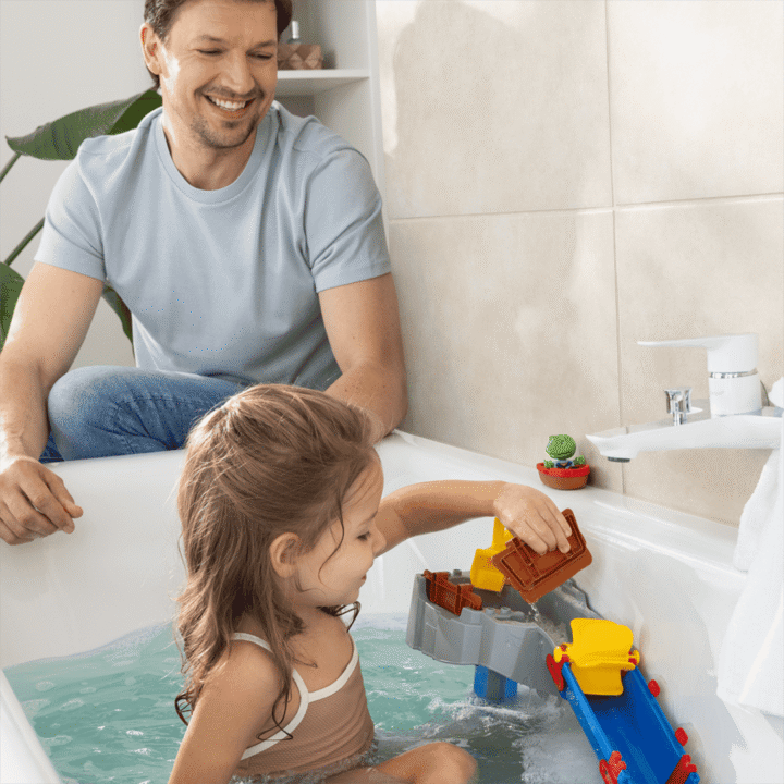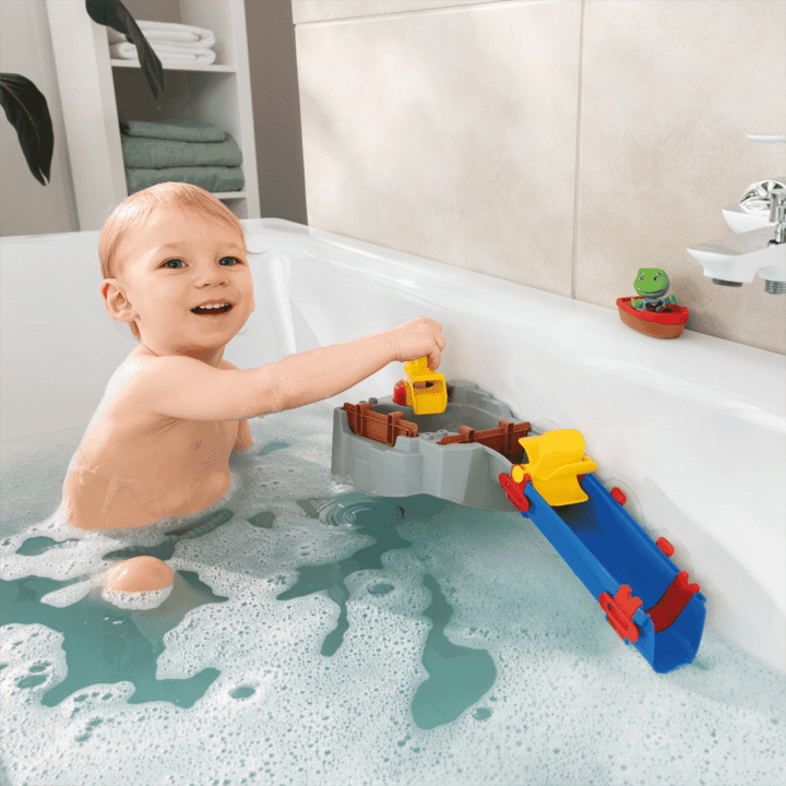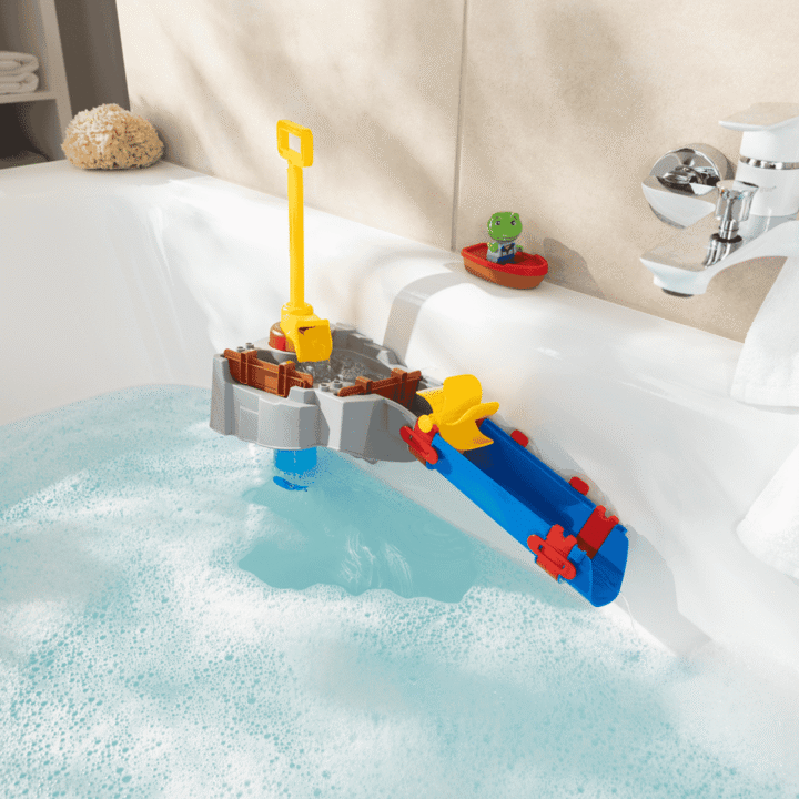 AquaPlay. Sploshy Mountain. Vattenbana. Med sugkoppar för att fästa på väggen, kanna, pump, vattenhjul m.m. 18 delar. Från 18 mån.