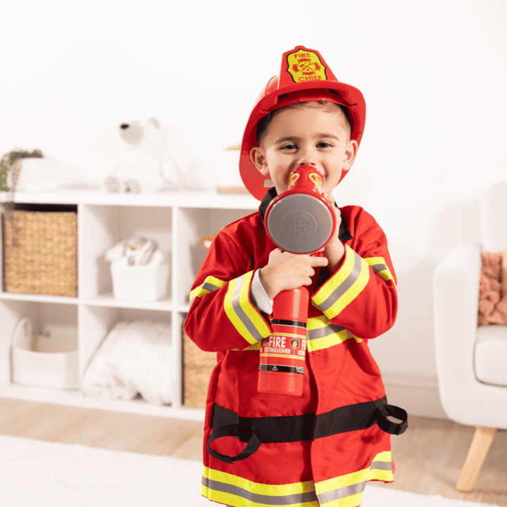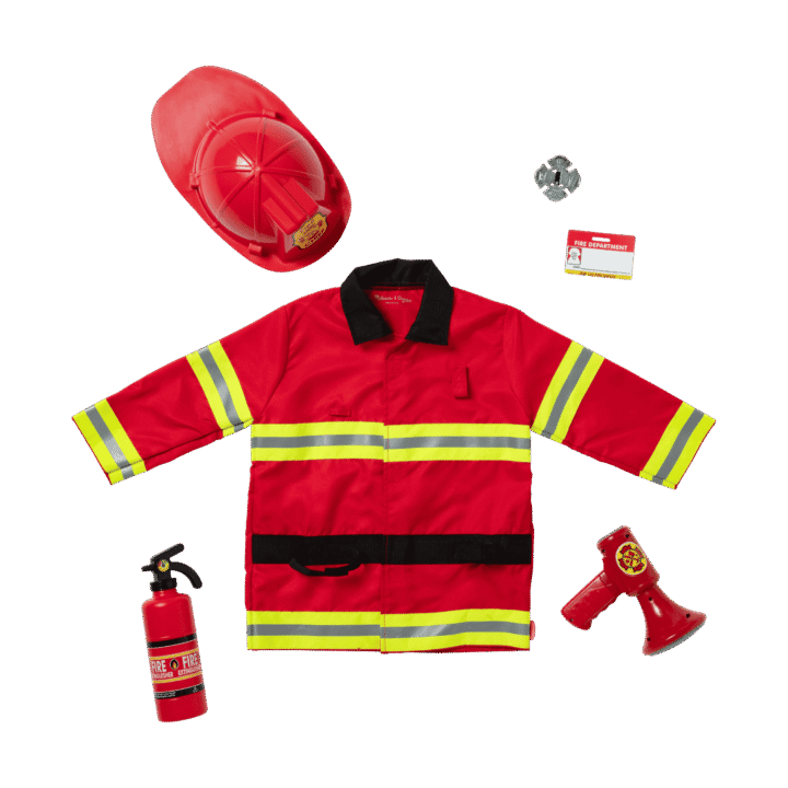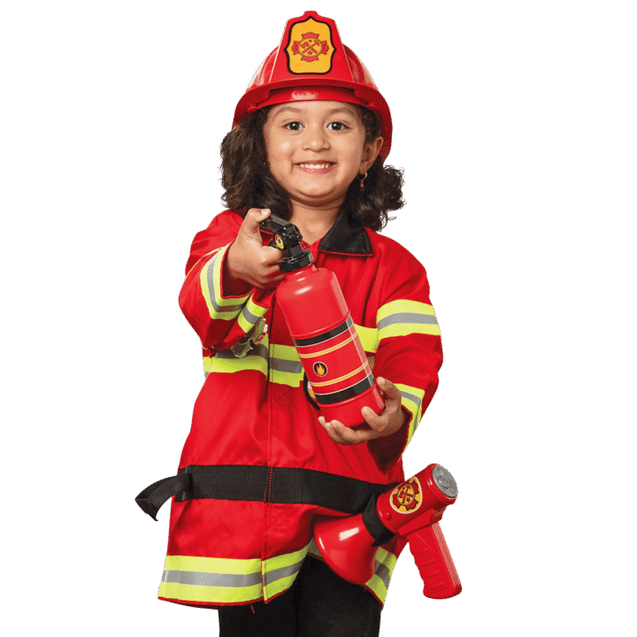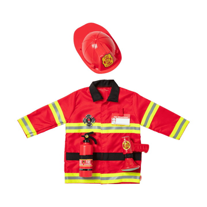Utklädningsset Brandman. Med jacka, hjälm, megafon, brandsläckare m.m. Från 3 år.