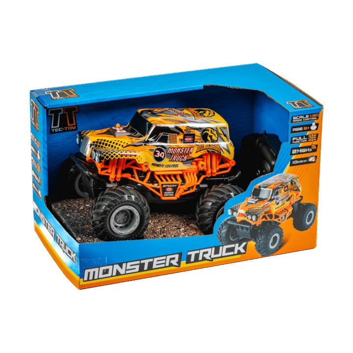 Radiostyrd Monstertruck. Med handkontroll 2,4 Ghz. Kör upp till 10 km/h. Skala 1:20. 18,5 cm. Från 6 år.
