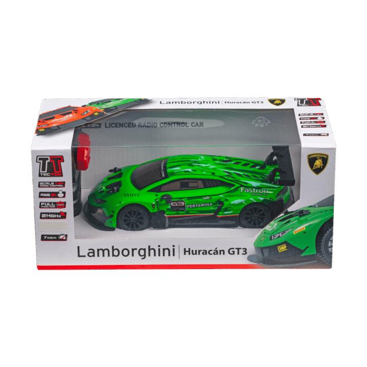Radiostyrd Lamborghini Huracan GT3. Med handkontroll. Kör upp till 7 km/h. 2,4 GHz. 20 cm. Från 6 år.