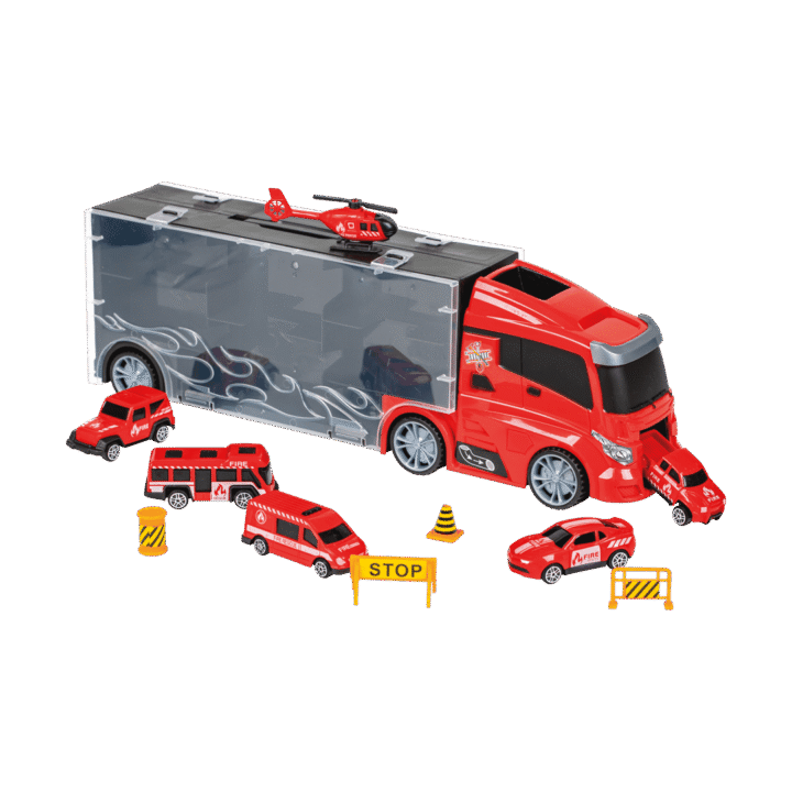 Transportbil. Med 5 räddningsfordon och 1 räddningshelikopter. 40 cm. Från 3 år.