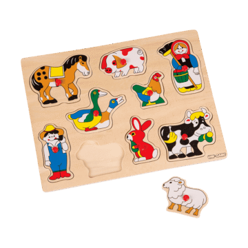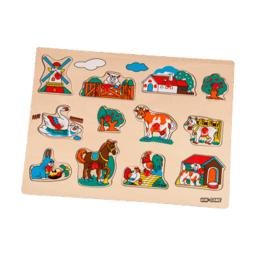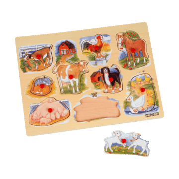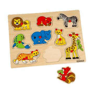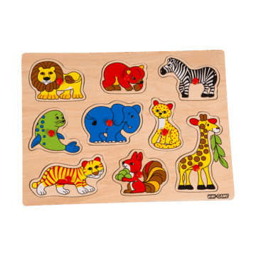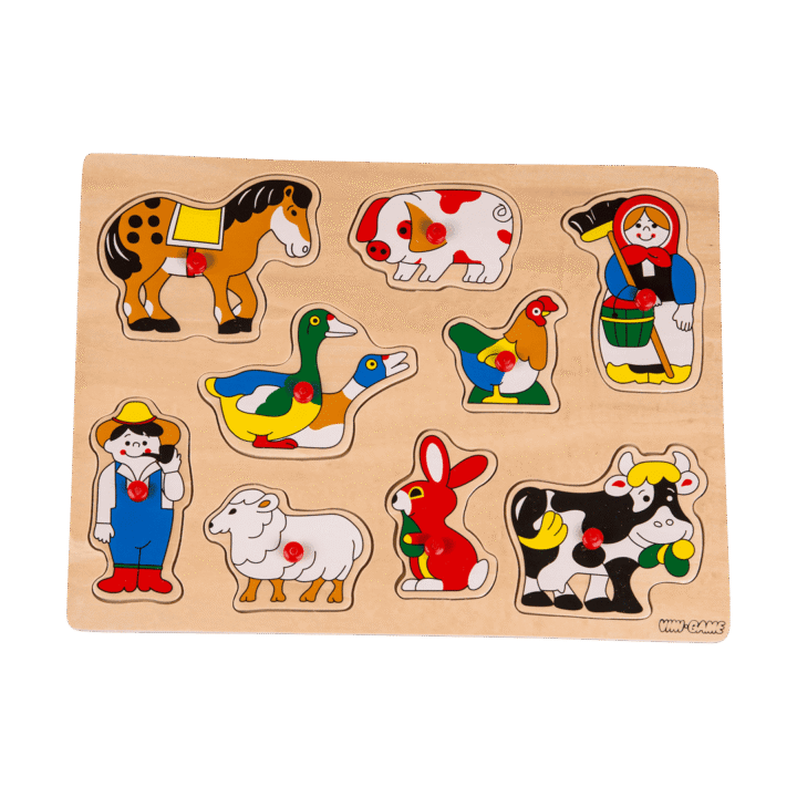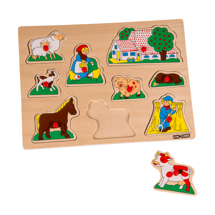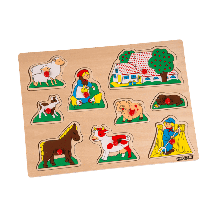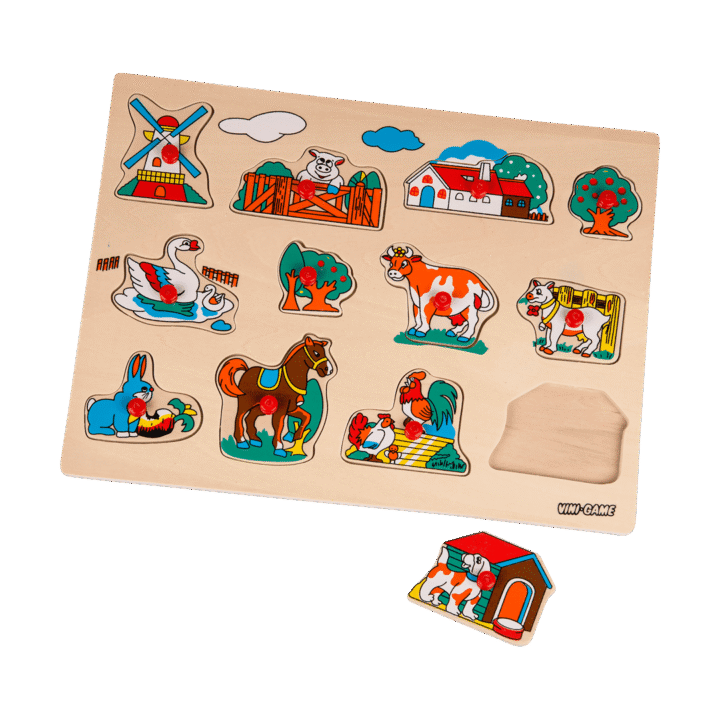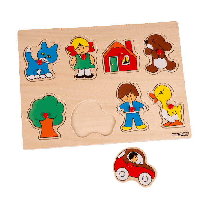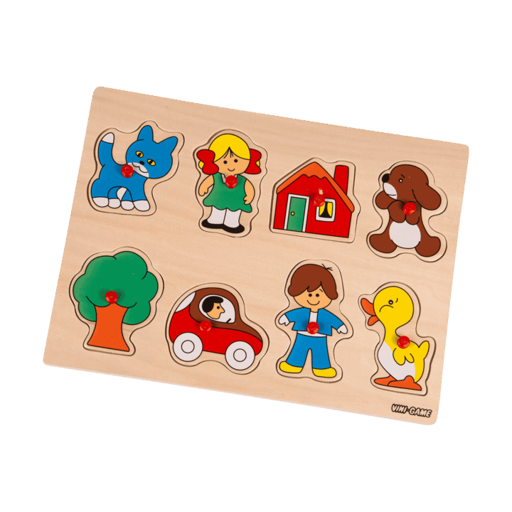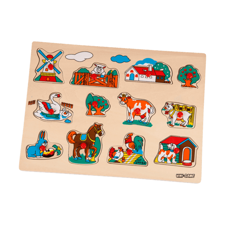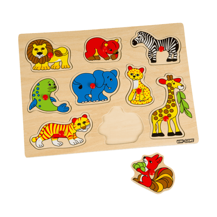 Vini-Game. Knoppussel. I trä. 30×21 cm. Finns flera olika. Från 18 mån.