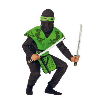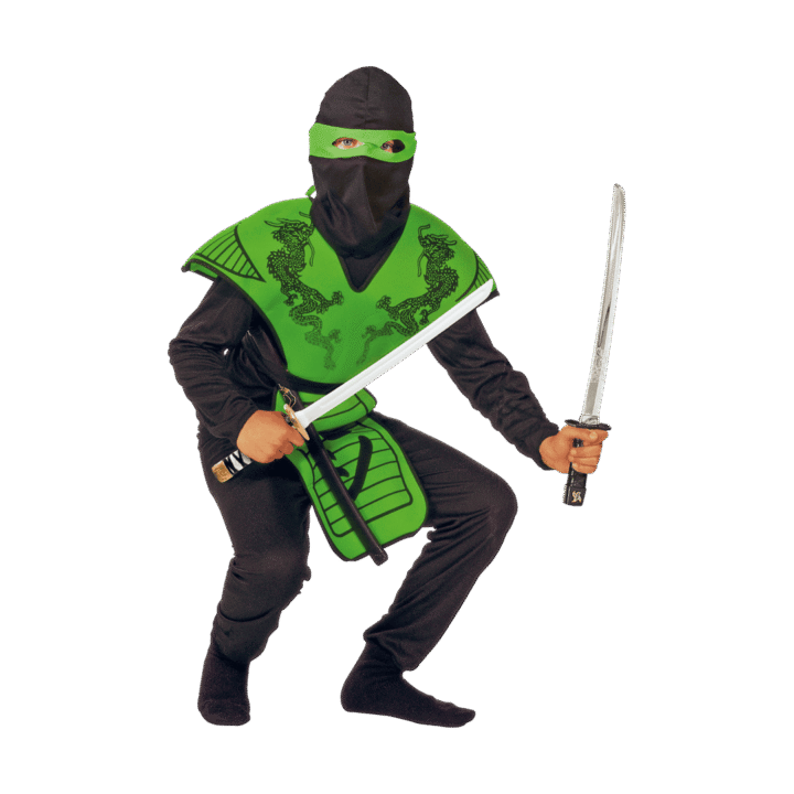 Dragon ninja. Maskeraddräkt. Med tunika, tröja, byxor, huva och mask. Finns 2 olika. Storlek 120, 140 och 160 cl.