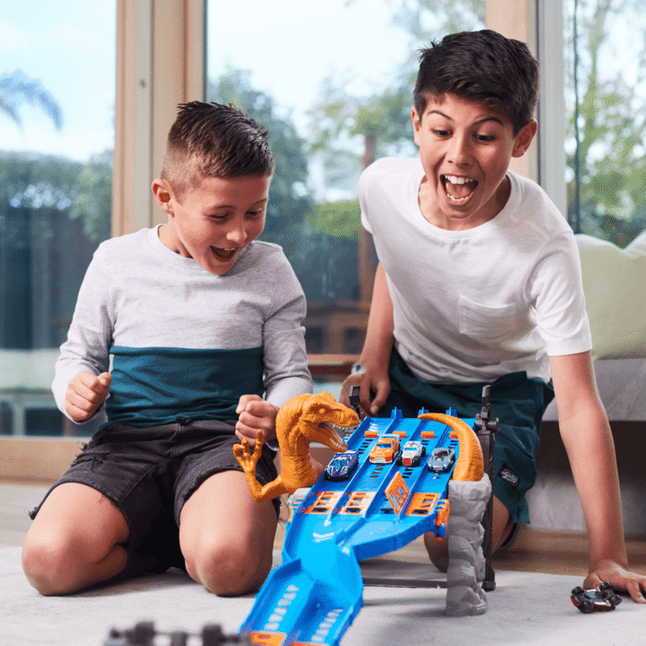 Metal Machines. 4-Lane Raptor Attack. Bilbana med 4-filig start, 1 attackerande Raptor och 2 dolda ejektorfällor. 1 bil ingår. Från 3 år.